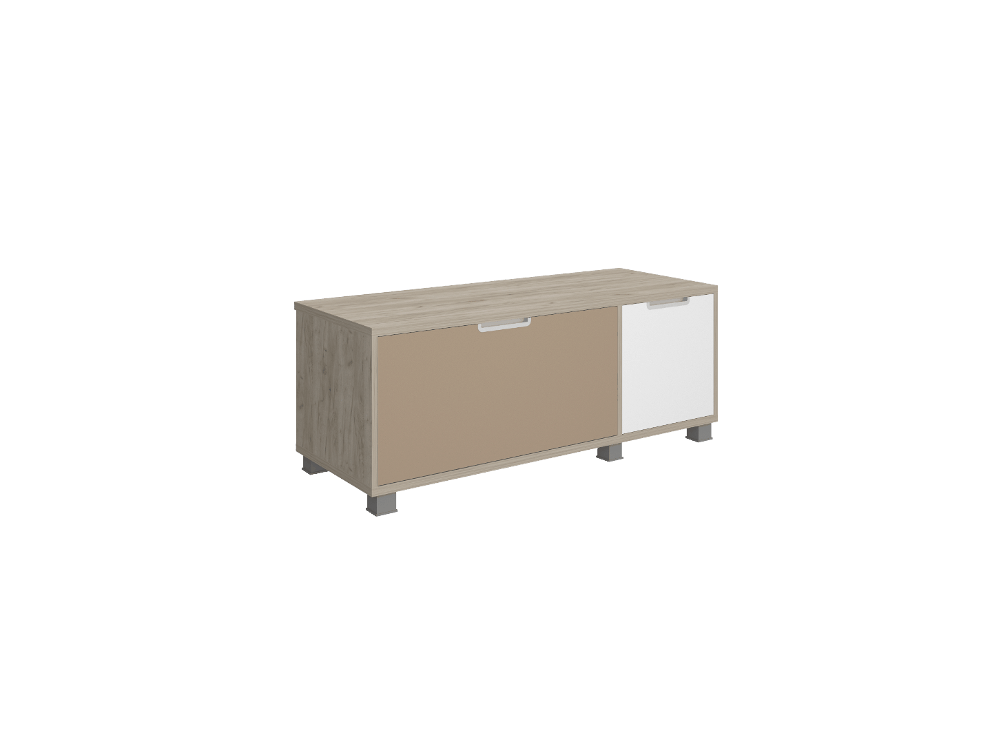 Базовый нижний модуль 3х1 выполнен из ЛДСП 22 и 16 мм. Опоры регулируемы. Встроенная литая ручка без выступающих элементов. Модуль имеет выдвижной нижний ящик и верхние ячейки.