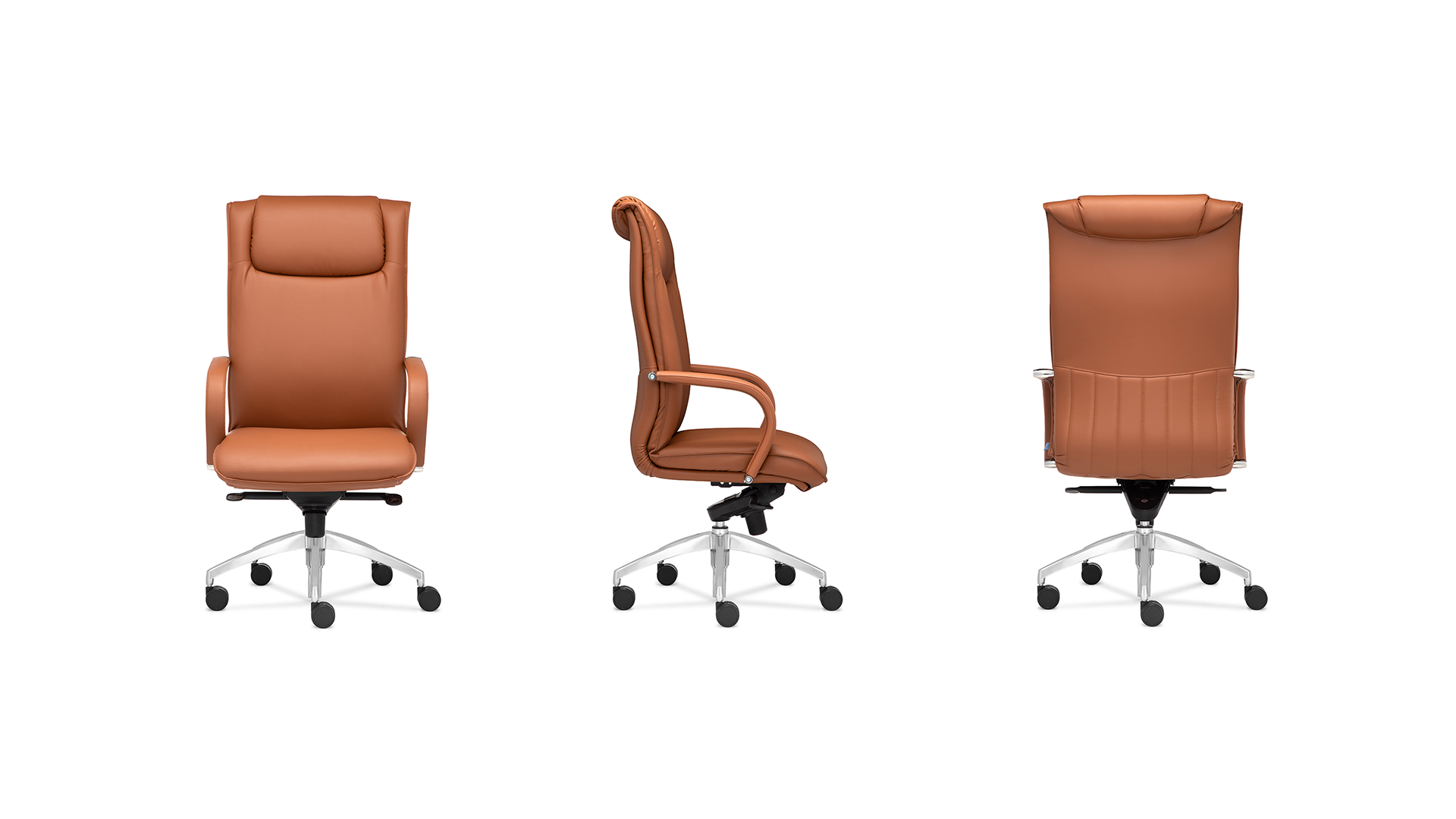 Обивка: ткань, экокожа, кожа+кожзам, кожа; Механизм: мультиблок; Подлокотник: в цвет кресла с декоративными хромированными вставками; Опора: полированный алюминий