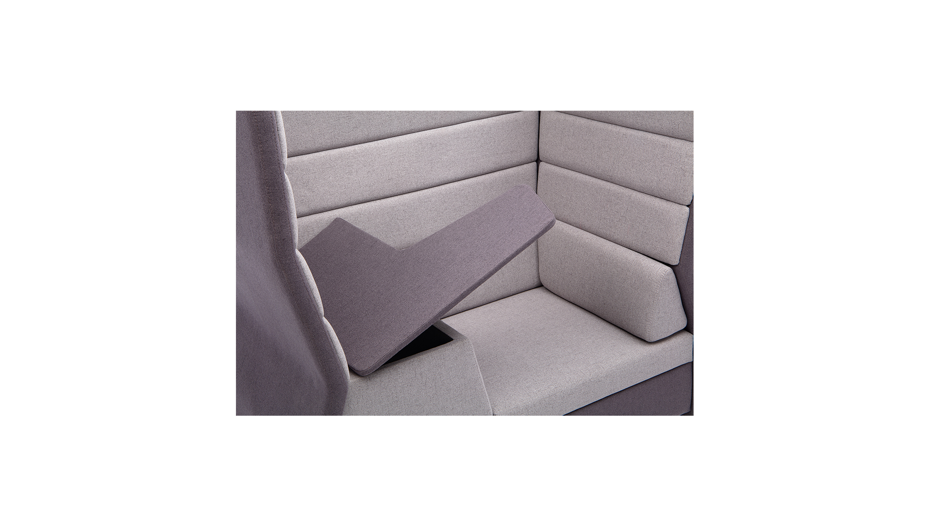 Столик;   Столик выполнен из фанеры и обтянут экокожей в цвет основного обивочного материала или по согласованию с заказчиком   ;  Шумоизоляция;   Конструкция модели обеспечивает прекрасное шумопоглощение   ;   Опоры;   Опоры дивана изготовлены из высокопрочной стали, цвет по умолчанию черный, возможна покраска по RAL по запросу